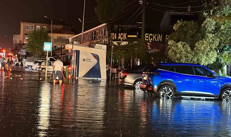 Fethiye’de akşam saatlerinde başlayan yağış nedeniyle Ali Gaffar Okan ve Cahit Gündüz Caddesi ile kentin farklı noktalarında yollar göle döndü. Esnaflar yol kenarındaki iş yerine akan suyun girmemesi için büyük mücadele verdi. Kaldırımları aşan su nedeniyle vatandaşlar zor anlar yaşadı. Trafiğin güçlükle seyrettiği ilçede bazı araçlar yağmur suyunun içinde kaldı. Vatandaşlar ve belediye ekipleri tıkanan giderleri açmak için seferber oldu.