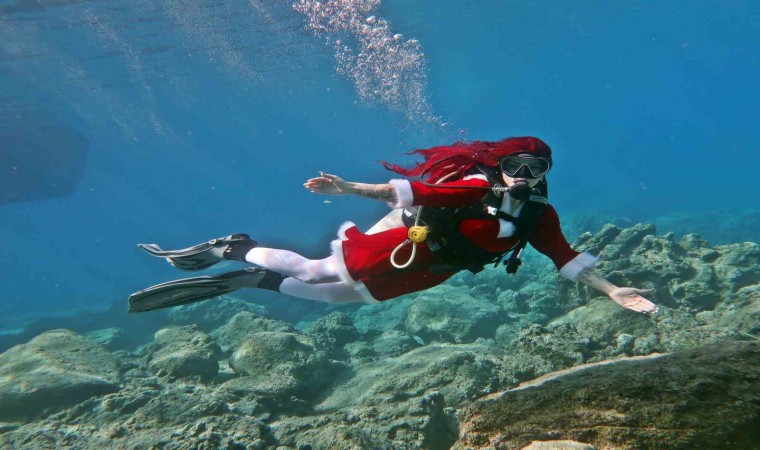 Fethiye’nin gözde dalış noktalarından Dalyan Koyu’nda, ilginç ve renkli bir etkinlik gerçekleştirildi. Dalgıç Niky Grey, yılbaşı kutlamalarına deniz altından farklı bir boyut kazandırarak, "Mutlu Noeller" yazılı pankartla denizin 5 metre altına daldı. Yeni yıl temalı bir kostüm giyen kadın dalgıç, dalışı sırasında rengârenk balıkların eşlik ettiği unutulmaz anlara imza attı.