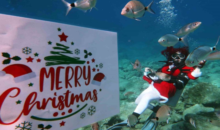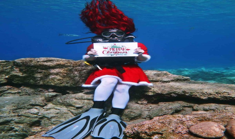 Muğla’nın Fethiye ilçesinde Slovenyalı kadın dalgıç Niky Grey, "Mutlu Noeller" yazılı pankartıyla 5 metre derinliğe daldı.