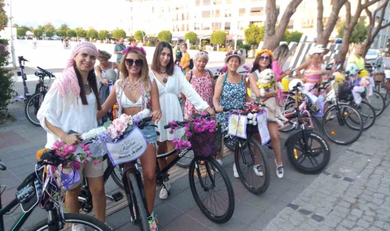 Muğla’nın Fethiye ilçesinde ”Dünya Otomobilsiz Kentler Günü” olarak düzenlenen “Süslü Kadınlar Bisiklet Turu” etkinliğine kadınlar süsledikleri bisikletlerle katılırken, çevredeki vatandaşlarda tura yoğun ilgi gösterdi.