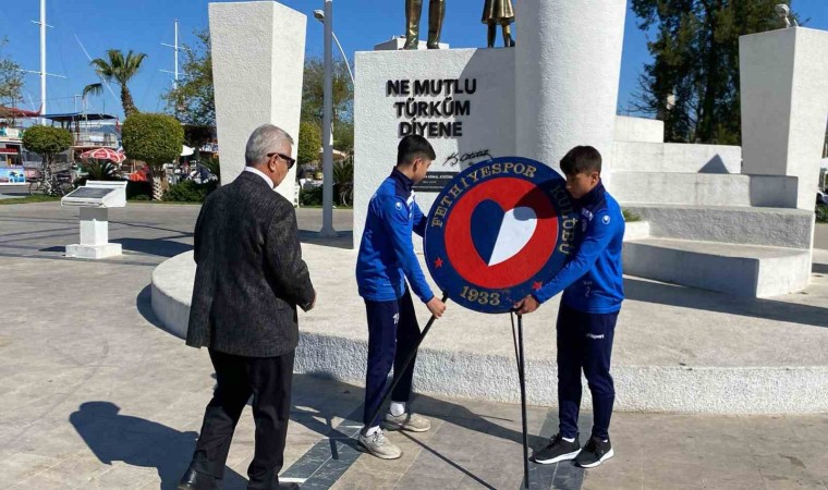 TFF 2. Lig Kırmızı Grup takımlarından Fethiyespor, 91. yıldönümünü sade bir çelenk sunma töreni ile kutladı. Fethiye Beşkaza Meydanı Atatürk Anıtı önündeki çelenk sunma töreninde konuşan Fethiyespor Başkanı Esat Bakırcı; "Fethiyespor’un üst liglerde olmasını diliyorum" dedi.