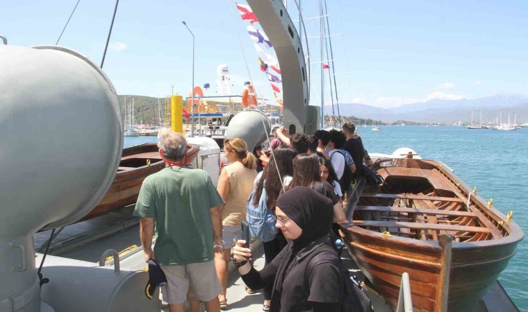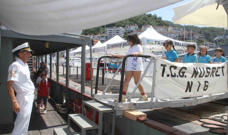 Fethiye, tarihi TCG Nusret Mayın Gemisi’ni ağırladı. Tarihi önem taşıyan geminin ziyareti, vatandaşlar tarafından büyük ilgi gördü.