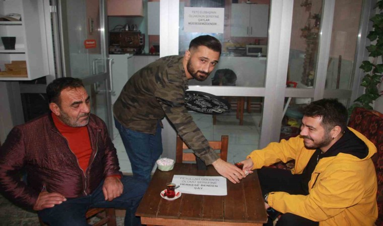 Ordulu çay ocağı işletmecisi Fatih Temel, sabah uyandığında cep telefonunda ABD’nin Pensilvanya eyaletinde yaşayan FETÖ’nün elebaşı Fetullah Gülen’in öldüğü haberlerini görünce müşterilerine ücretsiz çay verme kararı aldı. İş yerinin camına ve masasına ’Fetullah Gülen’in ölümü şerefine herkese benden çay’ yazan Temel, gün boyunca müşterilerine sınırlı sayıda çayı ücretsiz verdi.