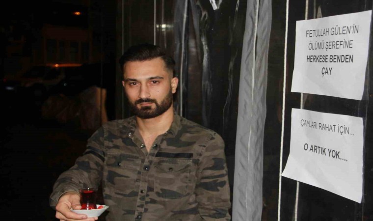 Çay ocağı işletmecisi Fatih Temel, hayatında aldığı en güzel haberlerden birinin Fetullah Gülen’in ölmesi olduğunu söyleyerek, “FETÖ terör örgütü lideri Fetullah Gülen’in ölmesinden dolayı çaylarımı ücretsiz ikram etmeye karar verdim. Müşterilerimiz de çok memnun oldu, onların da hoşuna gitti. İnşallah temennimiz bir daha böyle pisliklerle aynı havayı solumayız. Bunun gibiler tez zamanda ölür diye temenni ediyorum. Sabah uyandığımda telefonumda bildirim gördüm. Baktım ki FETÖ terör örgütü lideri Fetullah Gülen ölmüş. İlk başta inanmadım, araştırdığımda öldüğünü anladım. Sevinçle ayağa kalktım ve dükkana gelince çayları ücretsiz dağıtma konusunda karar aldım ve ölmesinin şerefine ücretsiz çay dağıttım” dedi.
