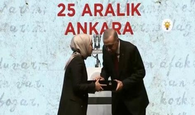 AK Parti Genel Merkez Gençlik Kolları Başkanlığı tarafından düzenlenen Mehmet Akif Ersoy’u Anma Programı’nda Mektup kategorisinde birinci olan Bursalı Feyzanur Özçelik Ünal ödülünü Cumhurbaşkanı Recep Tayyip Erdoğan’ın elinden aldı.