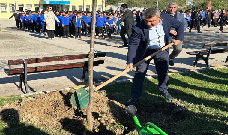 Dilovası Mübeccel Çolakoğlu Ortaokulu bahçesinde düzenlenen fidan dikme törenine Dilovası Kaymakamı Dr. Metin Kubilay, Dilovası Belediye Başkanı Hamza Şayir, Orman İşletme Şefi Ayhan Temur ve ekibi, kamu kurum müdürleri okul idaresi, öğretmenleri ve öğrencileri katıldı.
