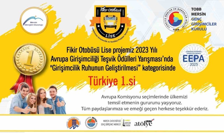 Mersin İl Milli Eğitim Müdürlüğü ve TOBB Mersin Genç Girişimciler Kurulu öncülüğünde yürütülen, Mersin Üniversitesi ve Mersin Ticaret ve Sanayi Odası’nın destekleriyle gerçekleştirilen ’Fikir Otobüsü Lise Projesi’, Avrupa Komisyonunun sponsorluğunda her yıl düzenlenen Avrupa Girişimciliği Teşvik Ödülleri yarışmasında, ’Girişimcilik Ruhunun Geliştirilmesi’ kategorisinde birincisi olarak, Avrupa Komisyonu seçimlerinde Türkiye’yi temsil etme hakkı kazandı.