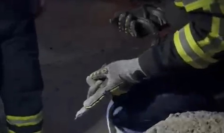 Edinilen bilgilere göre Erzin ilçesi Cumhuriyet Mahallesi’nde bir eve giren yılan kiler kısmında fileli çuvala dolandı. Bir buçuk metre boyundaki kara yılanı gören vatandaş durumu 112 Acil Çağrı Merkezi’ne ihbarda bulundu. İhbar üzerine olay yerine itfaiye ekipleri sevk edildi. Kısa sürede bölgeye gelen ekipler, fileye dolanan yılanı kurtardı. Ekiplerin yılanı kurtardığı ve su içirdiği anlar kameraya yansıdı. Fileden kurtarılan yılan, doğal yaşam alanına bırakıldı.