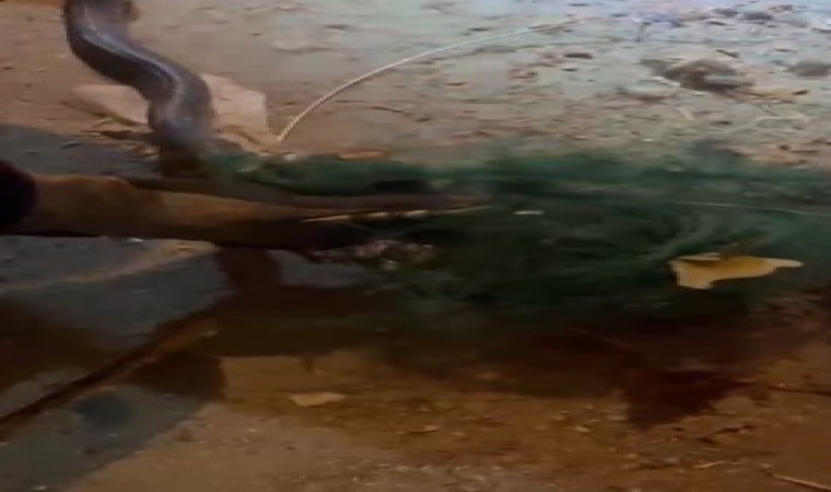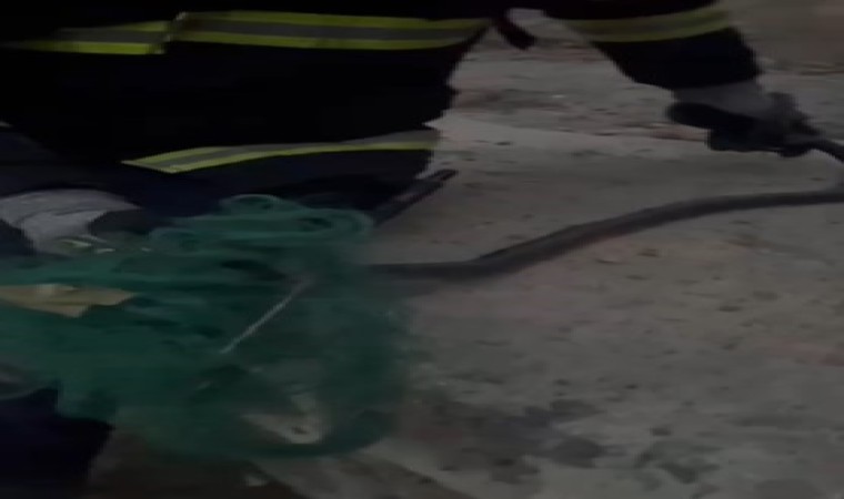 Hatay’ın Erzin ilçesinde fileye dolanan bir buçuk metrelik kara yılanı kurtaran itfaiyecinin, yılana su içirdiği anlar kameraya yansıdı.