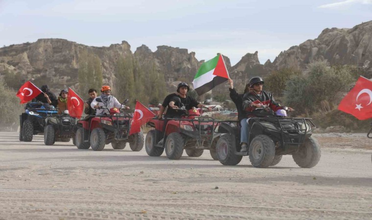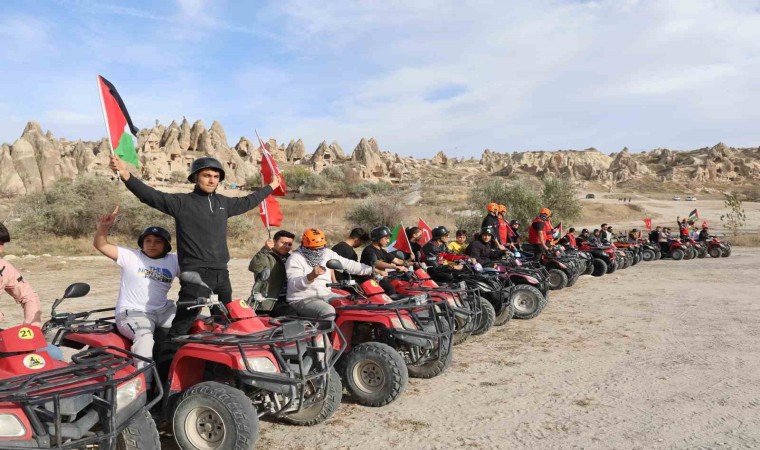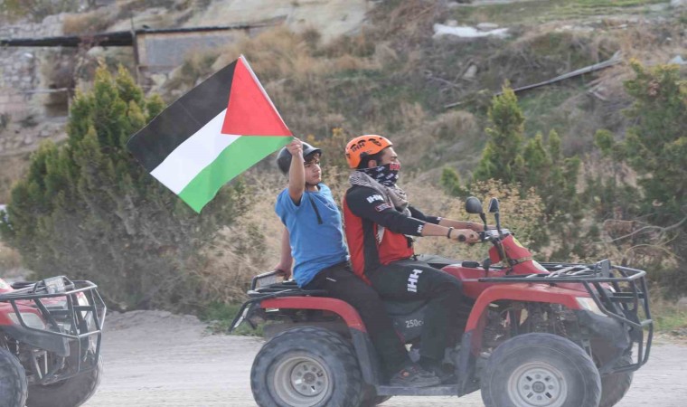 Yapılan basın açıklamasının ardından grup ATV motorları ile ellerinde Türk ve Filistin bayrakları ile Kapadokya vadilerinde tur attı.