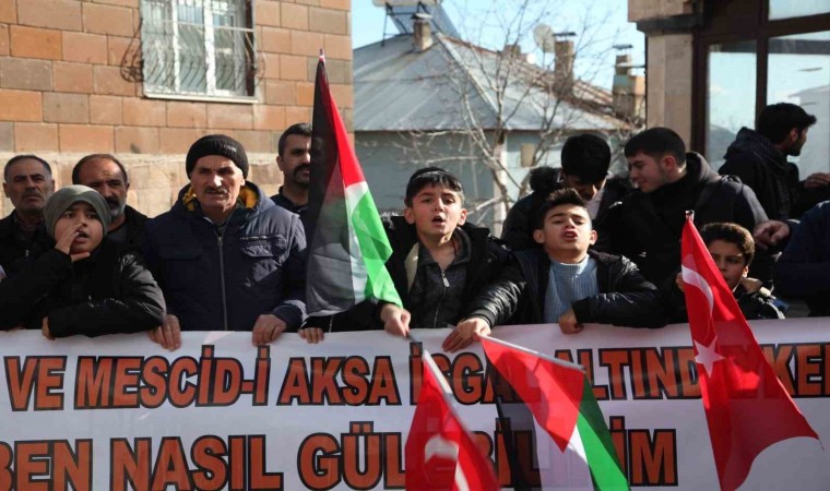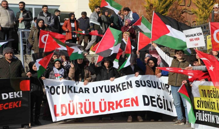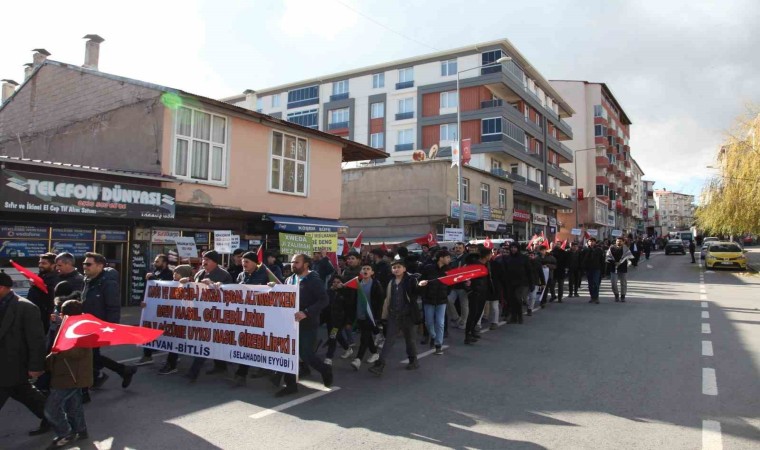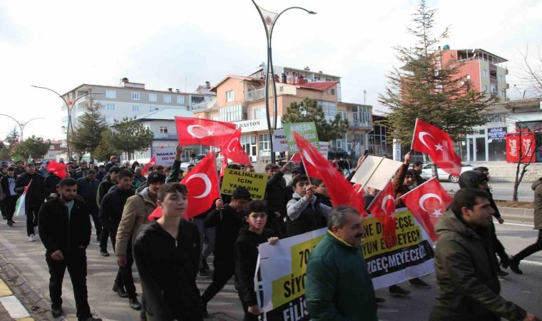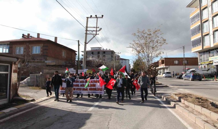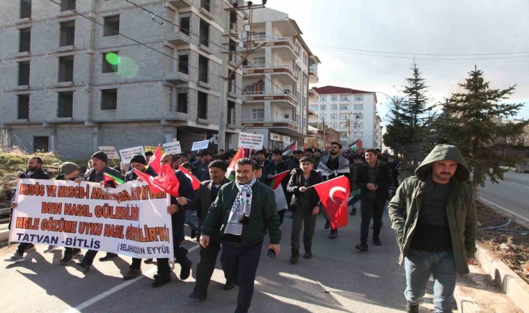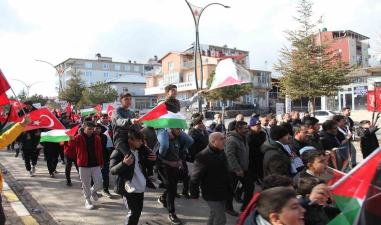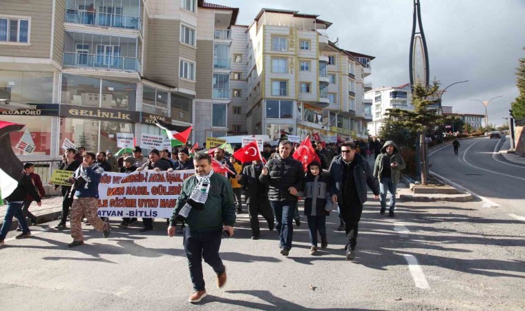 Bitlis’in Ahlat ilçesinde İsrail’in Filistin’e yönelik saldırılarını kınamak için toplanan kalabalık yürüyüş yaptı.