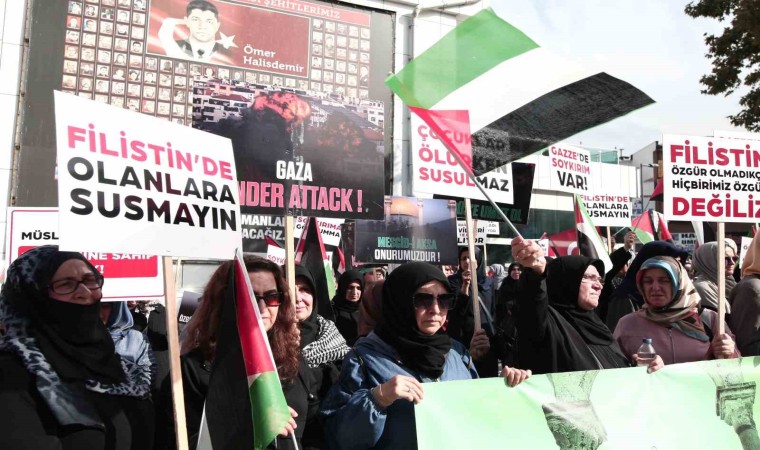 İsrail-Filistin savaşında şiddet tırmanmaya devam ederken Bursa Kadın Gönüllü Kuruluşları, savaşta zarar gören sivil halk için sessiz oturma eylemi yaptı. İsrail’in Gazze’deki hastane ve okulları vurduğunu söyleyen kadınlar savaşın bir an önce durmasını istedi.