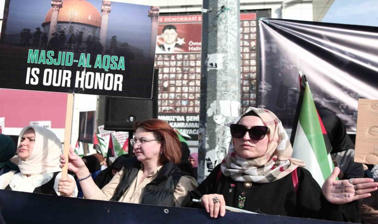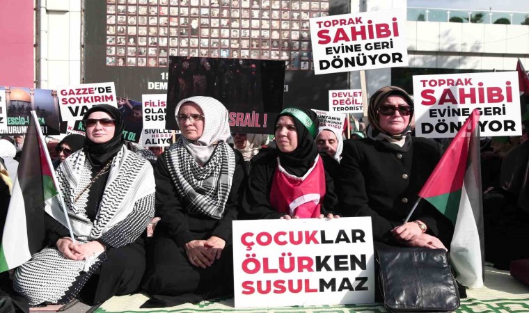 Gazze Şeridi’nde yaşananların soykırım olduğunu belirten kadınlar, “Filistin’den her geçen dakika acı haberler alıyoruz. Şu ana kadar işgalci İsrail’in Gazze Şeridi’ne gerçekleştirdiği saldırılarda binden fazlası çocuk olmak üzere 6 bine yakın kişi öldürüldü. Gazze Sağlık Bakanlığı, işgalci İsrail saldırılarında ölenlerin yüzde 70’inin kadın, çocuk ve yaşlılardan oluştuğunu ve bombalanan bina enkazında kalan bin 300 kişiden haber alınamadığını. Bunlardan 600’ünün yine çocuklardan oluştuğunu açıkladı. Tablo çok acı. İşgalci İsrail her 15 dakikada bir, üç çocuk katlederek Gazze Şeridi’nde, dünyanın gözü önünde soykırım uyguluyor. Bizler vicdan sahibi kadınlar ve anneler olarak, dünya liderlerini, uluslararası sivil toplum kuruluşlarını, Birleşmiş Milletleri, Avrupa İnsan Hakları Mahkemesi’ni, Uluslararası Ceza Mahkemesi’ni, İslam İşbirliği Teşkilatı’nı, Arap Birliği’ni, siyasi aktörleri ve kamuoyunu işgalci İsrail’in Gazze Şeridi’ne uyguladığı soykırımı durdurması için harekete geçmeye ve işgalci İsrail’e yaptırım uygulamaya davet ediyoruz. Biz, Filistinli kadın ve çocuklarını yanında olduğumuzu göstermek adına şu andan itibaren 25 Ekim Çarşamba günü 20.00’a kadar bu alanda sessiz bir oturma eylemi başlattığımızı kamuoyuna duyuruyoruz. Vicdan sahibi herkesi Filistinli kadın ve çocuklara destek vermeye ve onlara sahip çıkmaya davet ediyoruz” şeklinde konuştu.