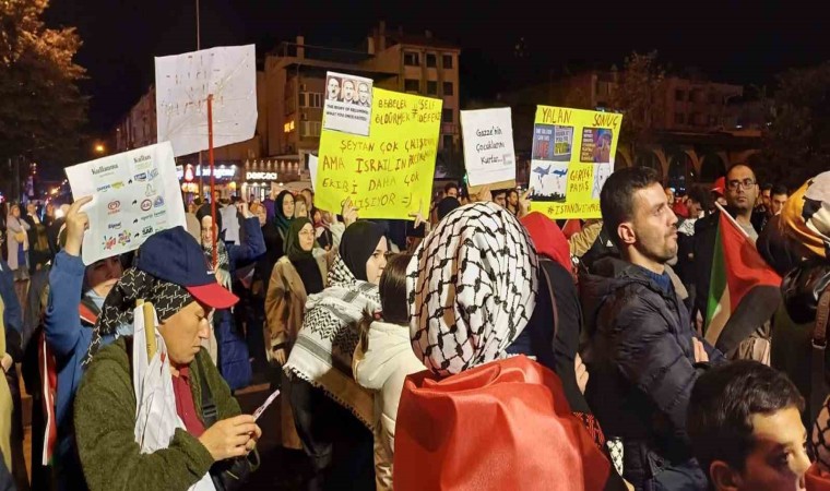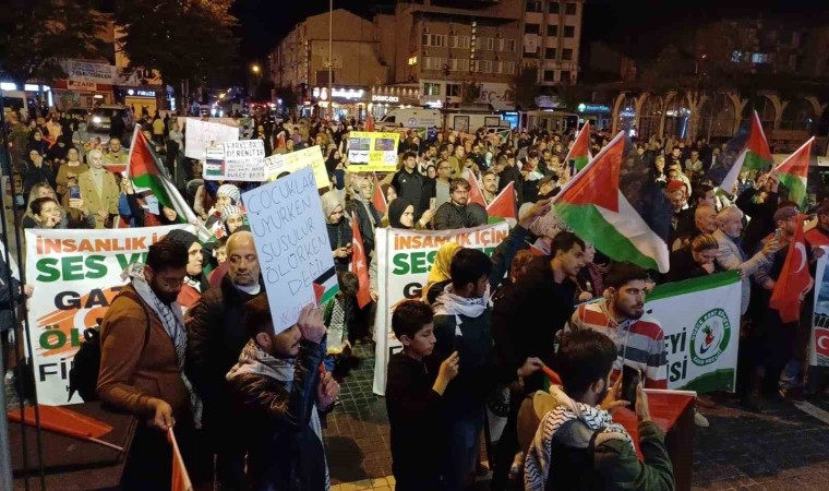 Düzce’de vatandaşlar, Gazze’deki hastaneye düzenlenen saldırıyı protesto etti.