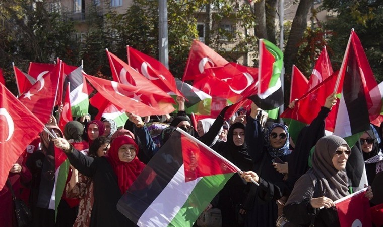 Açıklamada, "Mescid-i Aksa’nın mahremiyeti 1948’den beri çiğneniyor. Barış şehri olan Kudüs 75 yıldır mahzun. Yerleşimci çeteler her gün Filistinlilerin evlerini ve mallarını gasp ediyor. 16 yıldır boykot altındaki Gazze’de 2 buçuk milyon insan zindan hayatı yaşıyor. Maalesef bütün dünya bu katliamlar karşısında gözlerini kapamakta, kulağının üzerine yatmaktadır. Onlar istiyorlar ki Filistin halkı; Katliama uğrasa da sussun. Sürülse de itiraz etmesin. Yok, edilirken direnmesin. Kutsalları çiğnenirken, hastaneleri, okulları, camileri bombalanırken yaşadıkları hayata razı olsunlar. Onlar için, mazlum Filistinli makul Filistinlidir. Direnen Filistinli ise teröristtir. Oysa buradan bir kez daha ifade ediyoruz ki Filistin’in kendisini bu işgalci ve soykırımcı İsrail’e karşı savunması meşrudur ve desteklenmelidir. Filistin direnişini selamlıyoruz. Buradan bütün dünyaya, Birleşmiş Milletler’e, AB’ye, İslam İşbirliği Teşkilatına, bütün İslam ülkelerine sesleniyoruz; Birleşmiş Milletler, İsrail’e yönelik aldığı kararları uygulamalı, bebek katili Siyonistler Uluslararası Ceza Mahkemesi’nde yargılanmalı, uluslararası toplum ve İslam ülkeleri uyku modundan çıkmalıdır. Filistin devletinin kendisini savunabilmesi için askeri yardımlar yapılmalıdır. İsrail’le bütün diplomatik ilişkiler kesilmelidir. İşgal bitmeli, başkenti Kudüs olan bağımsız Filistin devleti kurulmalıdır. 2 milyar Müslüman ayağa kalkmalıdır. Açık ve net söylüyoruz. Bıçak kemiğe dayanmış, sabır taşı çatlamıştır. Siyonist İsrail döktüğü kanda boğulmalıdır, boğulacaktır. Ama bugün ama yarın! Fethi Mübin yakındır inşallah. Allah’ın izniyle Filistin’in özgürlüğü artık sadece zaman meselesidir. Gün kardeşlerimizle dayanışma günüdür. Gün meydanları doldurma, Filistinli kardeşlerimizin sesi olma günüdür. Bu vesileyle; Kardeş Filistin halkının işgale karşı direnişini selamlıyor, dünyanın farklı ülkelerinde Filistin’e destek veren milyonları İsrail’in vahşetine karşı tepki göstermeye ve dayanışmaya davet ediyoruz. Mazlum kardeşlerimizin yanında olduğumuzu bir kez daha haykırıyor, şehitlerimize rahmet, yaralılarımıza şifa diliyor, ’La galibe illallah’ diyerek, Kahrolsun siyonist terör devleti’’ ifadelerine yer verildi. Hayatını kaybeden Filistinliler için dualar okundu.