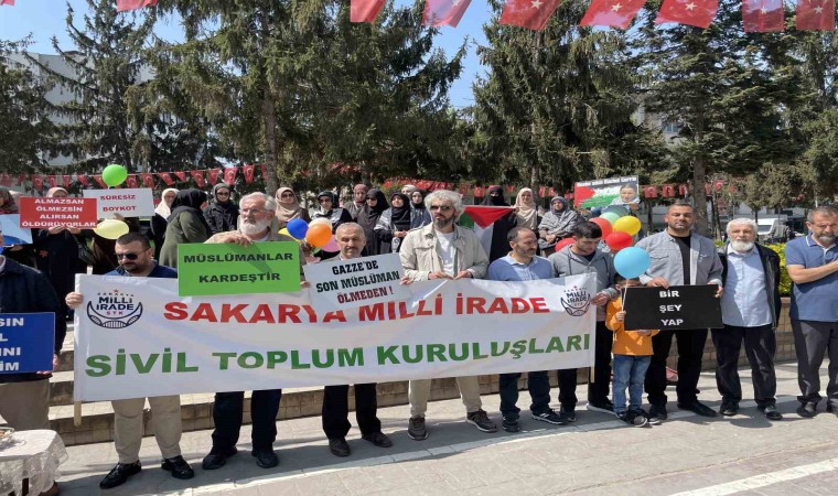 Sakarya’da Milli İrade Sivil Toplum Kuruluşları üyeleri Filistin’e destek olmak için bir araya geldi. Zulme dikkat çeken yazıların yer aldığı pankartları taşıyan vatandaşlar, İsrail’in Gazze’ye yönelik saldırıları protesto etti.