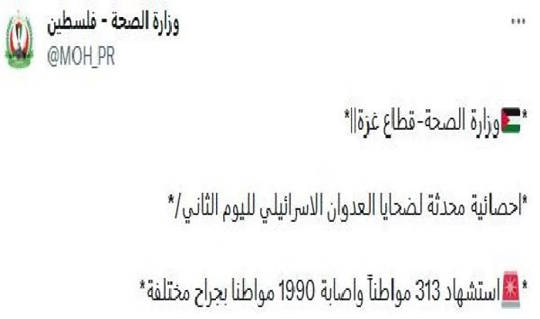Vahdet AYAZ, (DHA)- Filistin Sağlık Bakanlığı, İsrail’in düzenlediği saldırılarda 313 sivilin hayatını kaybettiğini, 1990 sivilin de yaralandığını duyurdu.