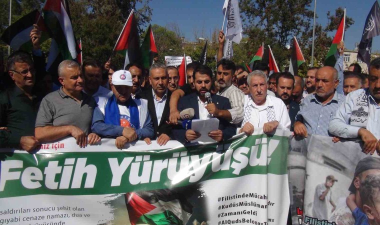 Adıyaman’da çeşitli sivil toplum kuruluşları Cuma Namazı sonrasında basın açıklaması yaparak Filistin’de hayatını kaybedenler için gıyabi cenaze namazı kıldı.