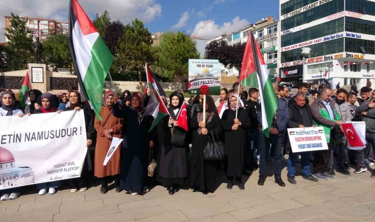 Yozgat’ta faaliyet gösteren sivil toplum kuruluşlarının bir araya gelerek oluşturduğu Yozgat Sivil İnisiyatif Platformu, cuma namazı sonrası Cumhuriyet Meydanı’nda Filistin’e destek amaçlı basın açıklaması düzenledi. Basın açıklamasında meydanda toplanan vatandaşlar, sloganlarla İsrail’e tepki gösterdi.