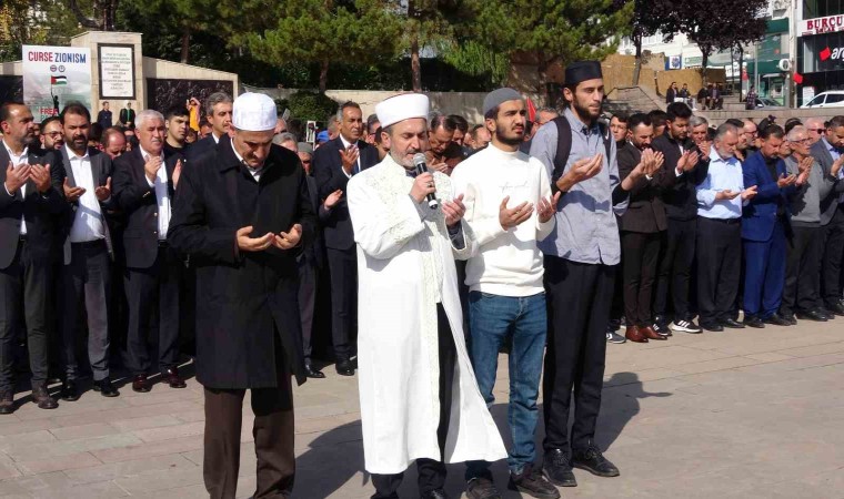 Basın açıklamasının ardından Filistin’de yaşamını yitirenler için İl Müftüsü Ali Gülden, gıyabi cenaze namazı kıldırdı. Gıyabi cenaze namazının ardından program Filistin halkı için edilen duayla son buldu.