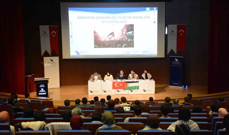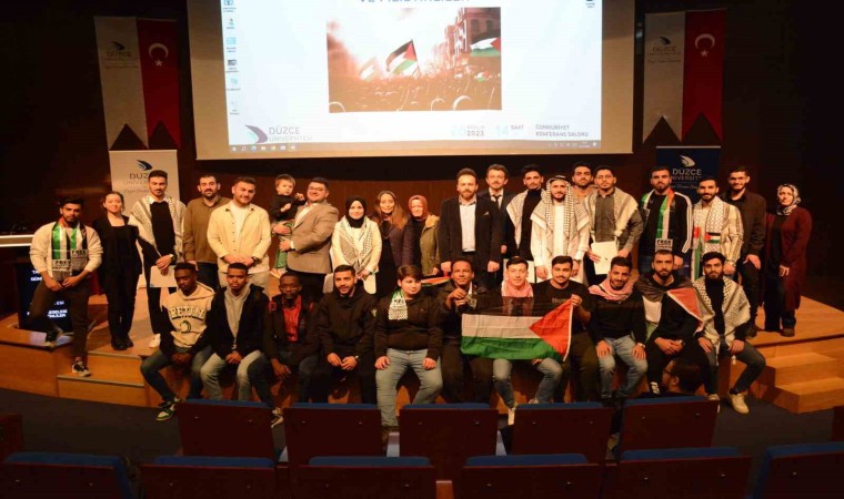 Düzce Üniversitesi Dil Tarih ve Kültürel Zenginlikleri Araştırma ve Uygulama Merkezi Müdürlüğü tarafından “Tarihten Günümüze Filistin Meselesi ve Filistinliler” başlıklı panel düzenlendi. Programda Filistinli öğrenciler “Filistin’de nefes alamaz durumdayız” dediler.