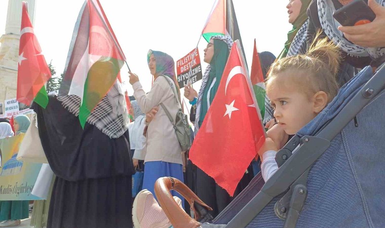 İsrail’i protesto gösterisinde, çocukların Filistin’e destek için yaptığı 1 kilometre uzunluğundaki resim de gösteriye katılanlar tarafından açıldı. Uzunluğu nedeniyle meydana sığmayan resim bir kısmı açılarak sergilendi. Gösteriye katılanlar, daha sonra Cedidiye Meydanı’ndan Anıtpark Meydanı’na kadar ellerindeki Türk ve Filistin bayrakları, pankartlarla sessizce yürüdüler. Anıtpark Meydanı’nda toplanan kalabalık daha sonra olaysız şekilde dağıldı.