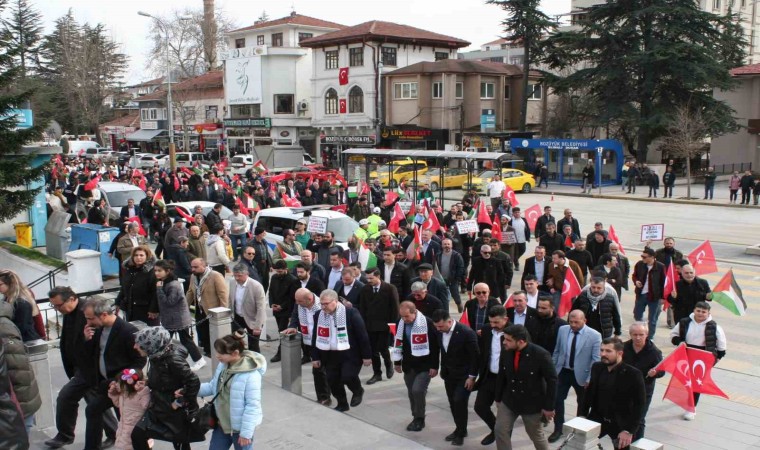 Mehteran eşliğinde gerçekleşen yürüyüşe çok sayıda vatandaş katıldı. Yürüyüş sonunda Cumhuriyet Meydanı’nda basın açıklama yapan Bozüyük Sivil Toplum Hareketi Platformu Koordinatörü Hakan Oğuz,; “Filistin ve Gazze’deki bombardımanların acil sonlandırılması için yaşanan insani krizin çözümü için, Avrupa İnsan Hakları Mahkemesine , Birleşmiş Milletlere, Uluslararası Adalet Divanına ve tüm vicdanlı dünya halklarına bir kez daha Bozüyük’ten seslenmek istiyoruz. Açlık ve ölüm tehdidi altında yaşayan milyonlarca Filistinli için acil bir şekilde refah sınır kapılarının açılması gerekmektedir. İnsani yardımların ulaştırılması ve sağlık hizmetlerine erişimin sağlanması için gerekli adımların derhal atılması çağrısında bulunuyoruz. Dünya artık bu katillere dur demeli ve Filistin’deki bu insani krize son vermelidir. İsrail’in işlediği suçlara karşı sessiz kalmak, suç ortağı olmaktır. Uluslar arası toplumun, vicdanı olan herkesin barış ve adalet için acilen harekete geçmesi gerekmektedir” dedi.