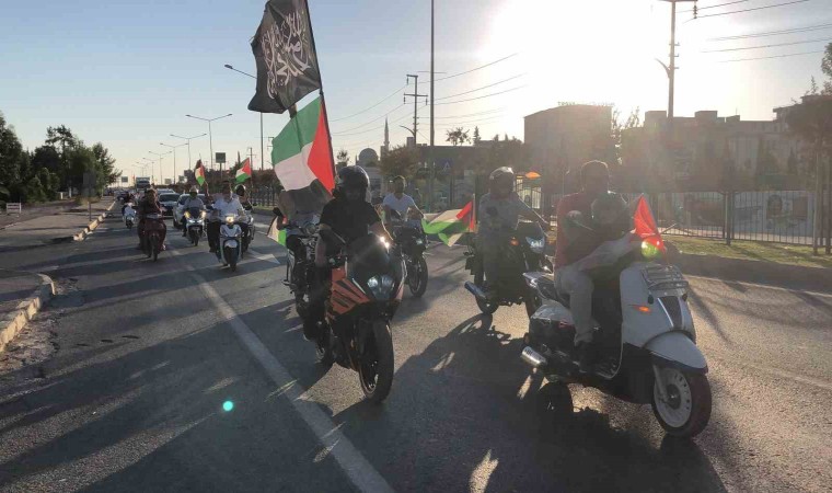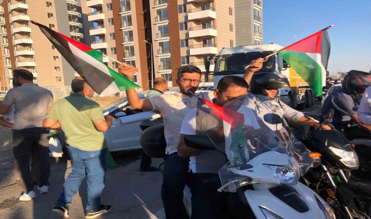 Adıyaman Küçük Sanayi Sitesi Kavşağından başlayan Filistin’e destek konvoyuna çok sayıda katılım oldu Araç ve motosikletlerden oluşan konvoy, kent merkezinde ilerledi.