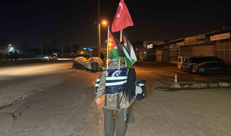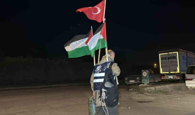 İsrail’in Gazze’deki savaşı devam ederken, 2 arkadaş Filistin’e özgürlük için yürüyüş başlattı. İstanbul’dan Ankara’ya kadar yürüyerek gidip tepkilerini göstermek isteyen 2 kişi yürüyüşlerinin 5. gününde Düzce’ye ulaştı. Günlük 35 ila 40 kilometrelik yürüyüş gerçekleştirdiklerini belirten İsmail Tiryaki, “Biz Filistin’e özgürlük diyerek başlattığımız yürüyüşümüzü Ankara Kızılay meydanında sonlandırmak istiyoruz. Bugün emperyalizmin ve destekçilerinin mağdurları ve mazlumları katlettiği için yürüyüş yapıyoruz. Bu durumda bize yardımcı olan emniyet mensuplarına teşekkür ederiz. Bize gösterilen destekten ötürü herkese teşekkür ediyoruz. Kızılay meydanına kadar yürüyüşümüzü gerçekleştireceğiz. Bütün dünyanın vicdanına sesleniyoruz. Özgürlük, özgürlük, özgürlük diyoruz. 5 gün önce yürüyüşümüze başladık. Ortalama 35-40 kilometre arasında yürüyoruz. Sabah namazından akşam namazına kadar yürüyüşümüzü gerçekleştiriyoruz” şeklinde konuştu.
