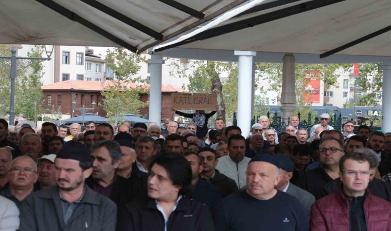Öğle vakti öncesinde Filistinli şehitler için sala okunurken, öğle namazı sonrasında da gıyabi cenaze namazı kılındı. Tarihi Zağnos Paşa Camisinde kılınan gıyabi cenaze namazına yoğun katılım oldu. Cami imamı tarafından kıldırılan gıyabi cenaze namazı sonrasında İsrail’in saldırıları sonrasında hayatlarını kaybedenler için dua edildi. Cenaze namazı sırasında bir kadın karton kutu üzerine “Katil İsrail” yazısı yazarak sessiz bir şekilde saldırıları kınadı.