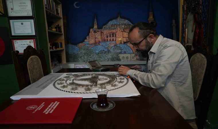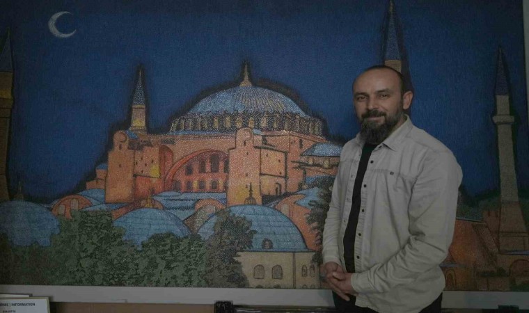 Filografi sanatçısı Mustafa Baştan, hayalini kurduğu Ayasofya-i Kebir Cami-i Şerifi tablosunu 9 ay boyunca 120 bin çiviyle işleyerek resmetti.