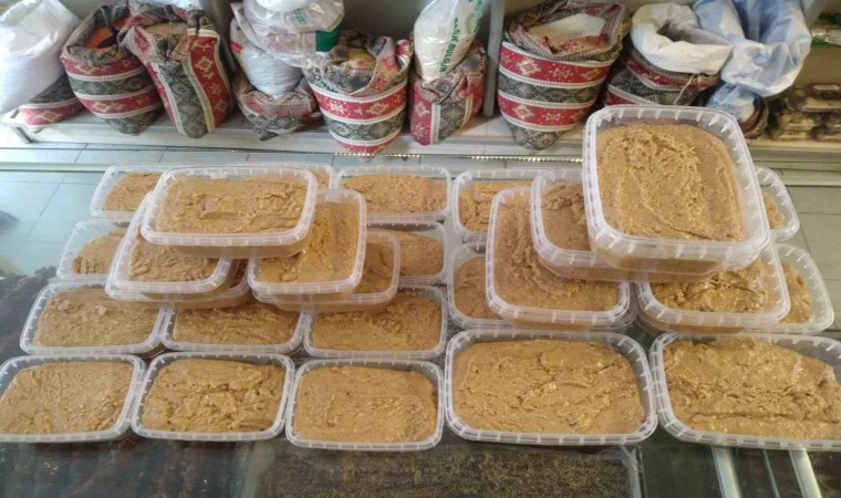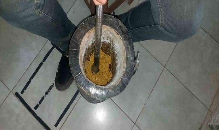 Giresun’un Şebinkarahisar ilçesinde yapılan elde dövme fındık helvası, kış aylarında vücudu sıcak tutuyor ve enerji veriyor.