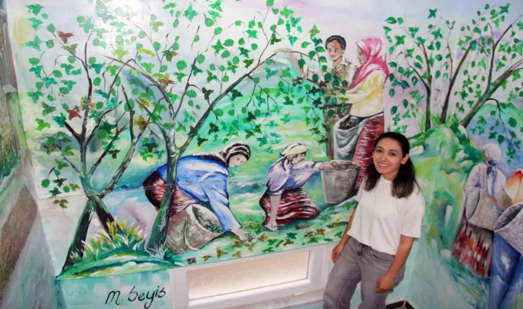 Giresun’un Piraziz ilçesinde fındık kırma atölyesi işleten Demet Öztürk, evinin merdiven duvarlarını bir sanat galerisine dönüştürdü. Öztürk, fındığın dört mevsim süren on iki aylık gelişim sürecini yağlı boya resimlerle anlattı.