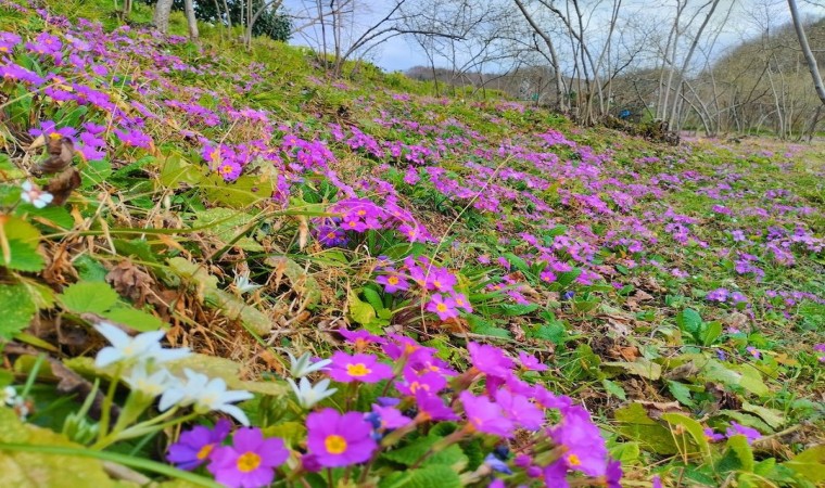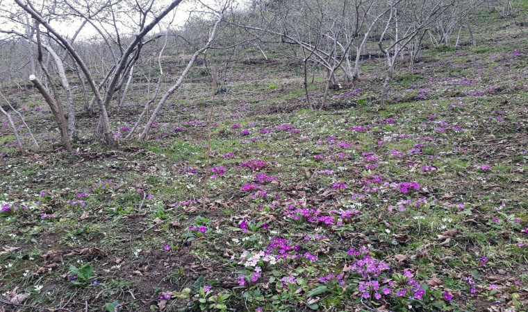 Giresun’da bahar mevsiminin gelmesi ve hava sıcaklıklarının yavaş yavaş yükselmeye başlamasıyla birlikte menekşeler açmaya başladı.