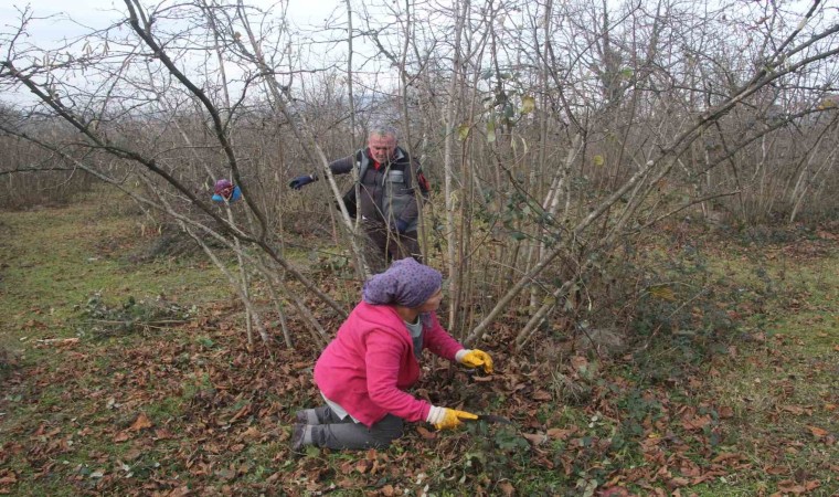 Karadeniz Bölgesi’nin en önemli geçim kaynağı olan fındıkta kış bakımı başladı. Fındık bahçesinde eşleri ile birlikte yevmiye usulü çalışan kadınlar, aile ekonomisine katkı sunuyor.