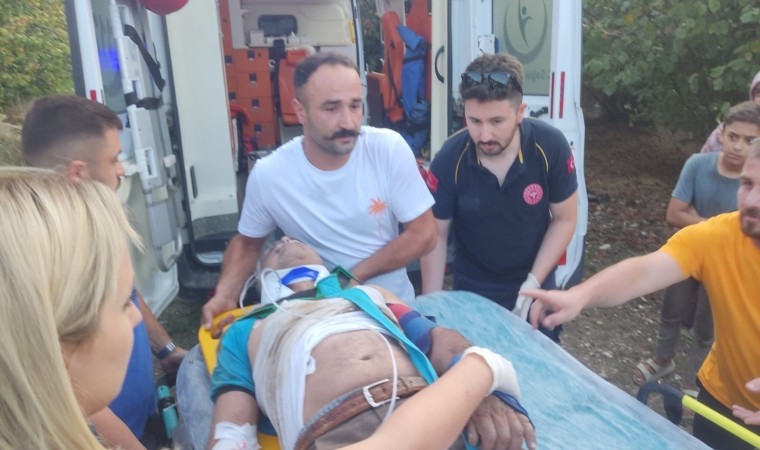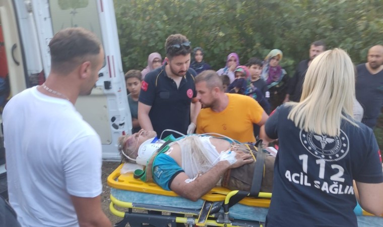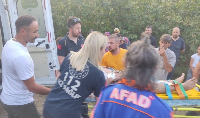 Düzce’de fındık bahçesinde tırpan yaparken ayağı kayıp uçuruma yuvarlanan şahıs, AFAD ekiplerince kurtarılarak hastaneye kaldırıldı.