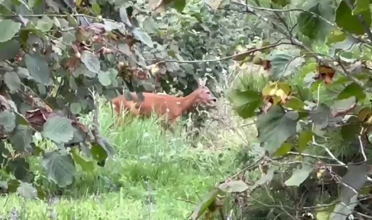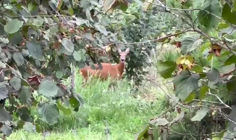 Yeniköy Mahallesi’nde yiyecek arayışında olan karaca, fındık bahçesine girdi. Karacayı fark eden vatandaş ise karacaya “Kızım” diye seslenen adam, o anı ölümsüzleştirmek için cep telefonuyla kayda aldı. Bir süre duran karaca daha sonrasında bölgeden kaçarak uzaklaştı.