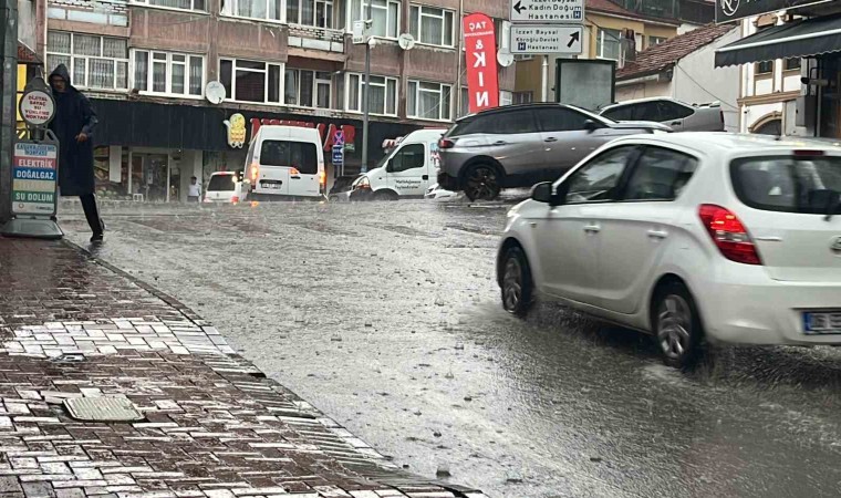 Bolu’da etkili olan yağmur ve dolu günlük yaşamı olumsuz etkiledi.