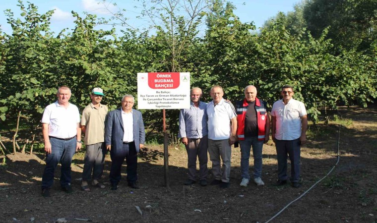 Projenin ilerleyişini değerlendiren ve katılımcılara aktaran Çarşamba Ticaret Borsası Yönetim Kurulu Başkanı Hacı Toraman ise “Proje çerçevesinde 2022 yılında olduğu gibi oluşturulan cep teras bahçelerinde ve budama yapılan fındık bahçelerinde mevsim şartları takip edilerek gözlemleme yapılmış, fındık bitkisinin fenolojik gelişimi İlçe Tarım ve Orman Müdürlüğümüzün teknik personelleri tarafından takip altında tutularak uygun iş ve işlemler yapılması konusunda üretici ile temas halinde bulunulmuştur. Proje bahçelerinde verim ve kaliteyi artırmak için kışlık gübreleme ve toprak tahlilinin önemi, fındık külleme ve kozalak akarı mücadelesi ve mayıs böceği zararlısı hakkında bilgi verilerek kültürel ve kimyasal mücadele yapılması sağlanmıştır. Bu çabaların sonunda görüyoruz ki doğru oranda gübreleme, kimyasal mücadele ve budama ile daha sağlıklı, daha güçlü ve mahsulü bol fındık dalları elde etmiş olduk” şeklinde konuştu.