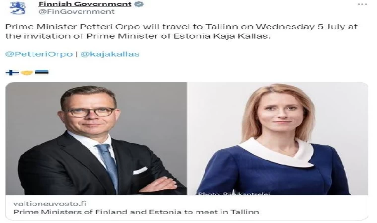 FİNLANDİYA, (DHA)- Finlandiya Başbakanı Petteri Orpo, Estonya Başbakanı Kaja Kallas’ın davetlisi olarak 5 Temmuz’da Estonya’nın başkenti Tallin’i ziyaret edecek.