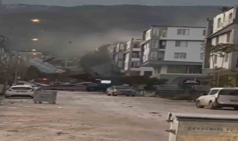 Hatay’da kuvvetli fırtınanın 3 katlı apartmanın metal çatısını uçurduğu anlar kameraya yansıdı.