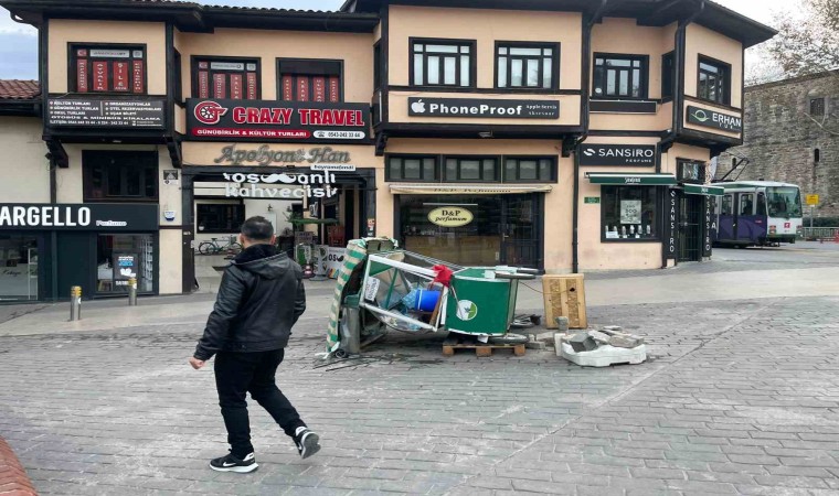 Kentin üst kesimlerinde bir çok noktada reklam tabelası yıkıldı, ağaçların dalları kırıldı. Cumhuriyet Caddesi’nde seyyar simitçi arabası ise devrilerek hasar gördü.