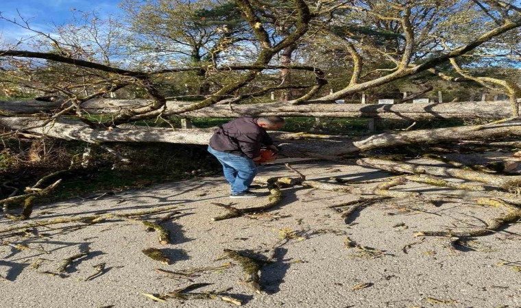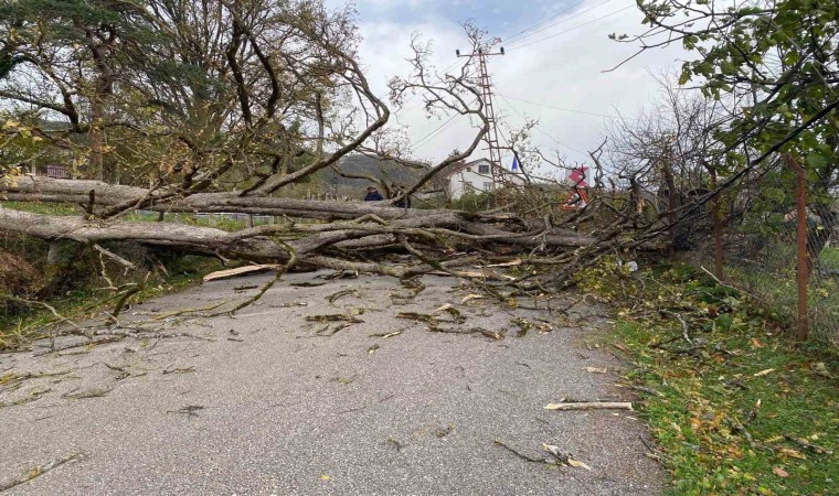 Kastamonu’nun Çatalzeytin ilçesinde yaşanan fırtına sebebiyle bazı evlerin çatısı uçarken, devrilen ağaç ise köyleri elektriksiz bıraktı.
