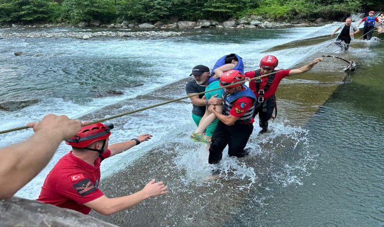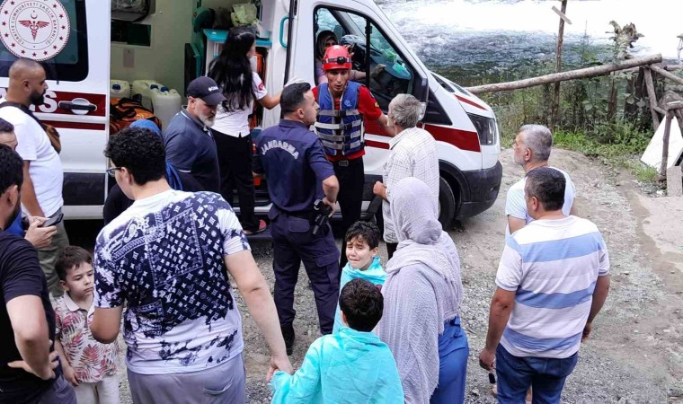 Olay Çamlıhemşin ilçesi Fırtına deresinde dün saat 16.45 sıralarında meydana geldi. Edinilen bilgiye göre, ailesi ile tatil için geldikleri Rize’de serinlemek isteyen 10 yaşındaki Zeyd Taha Sayan bir anda Fırtına Deresi’nin azgın sularına kapıldı. Oğlunun çırpınarak sürüklendiğini gören 44 yaşındaki baba Beşir Sayan da hemen arkasından suya atladı. Çevredekilerin ve aile bireylerinin olayı fark etmesi üzerine 112 Acil Çağrı Merkezi’nden yardım istendi. Olay yerine polis, sağlık ve Jandarma Arama Kurtarma (JAK) ekipleri sevk edildi. Dereye girdikleri yerden ortalama 50 metre sürüklenen baba ve oğlu ekiplerin ve çevredekilerin yardımı halatla kıyıya çekilerek kurtarıldı. Sağlık durumlarının iyi olduğu öğrenilen baba ve oğlu olay yerine gelen sağlık ekipleriyle tedbir amaçlı olarak hastaneye kaldırıldı.