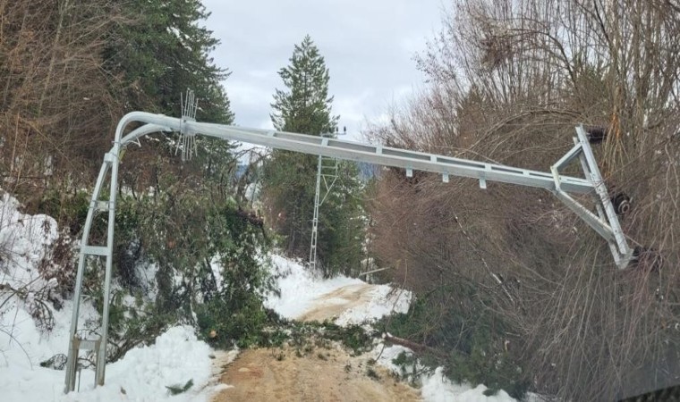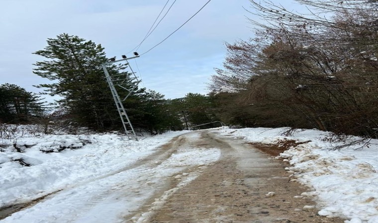 Kar yağışının etkili olduğu ilçeye bağlı köylerde fırtına nedeniyle de elektrik direkleri devrildi.