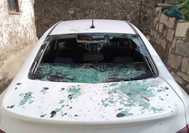 ELAZIĞ’IN KEBAN İLÇESİNE ETKİLİ OLAN FIRTINA SIRASINDA ÇATIDAN KOPAN GÜNEŞ ENERJİ PANELİ, BİR ARACIN ÜZERİNE DÜŞEREK ZARAR VERDİ