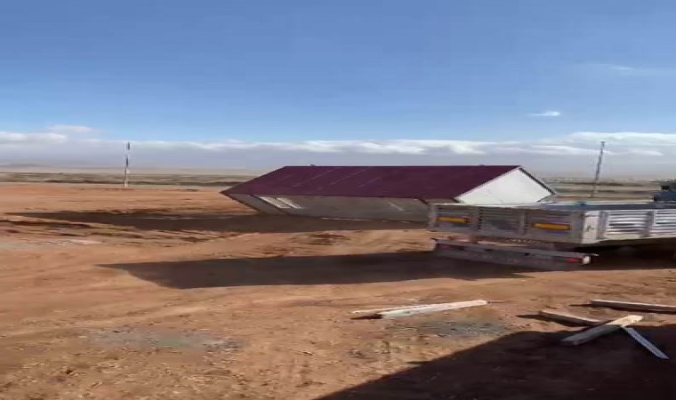 Sivas’ta şiddetli fırtınaya dayanamayan konteyner ev kağıt gibi savruldu.