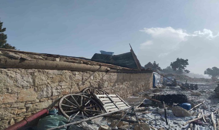 Şiddetli fırtına Mersin’in Mut ilçesinde küçükbaş hayvan barınağının çatısını uçurarak zarar verdi.