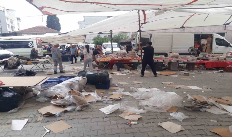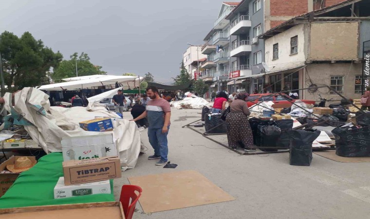 Denizli’nin Bozkurt ilçesinde etkili olan şiddetli fırtına, semt pazarının altını üstüne getirdi. Satışa sunulan ürünlerin bir birine girdiği pazaryerinde, esnaflar zor anlar yaşadı.