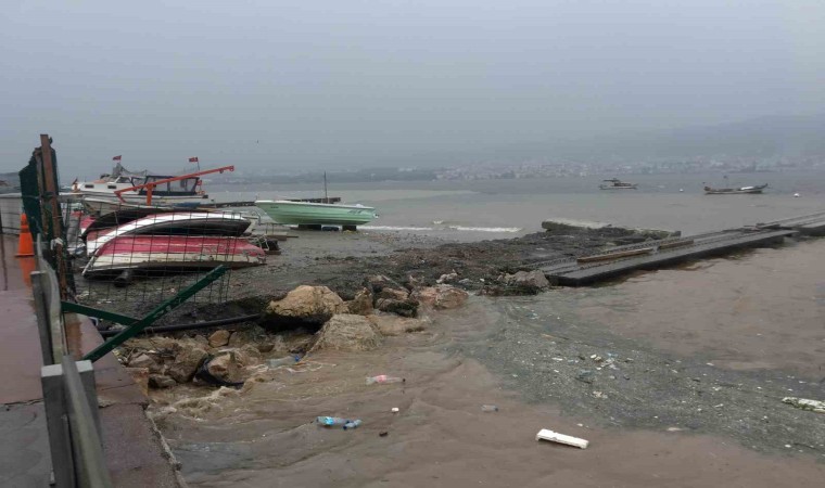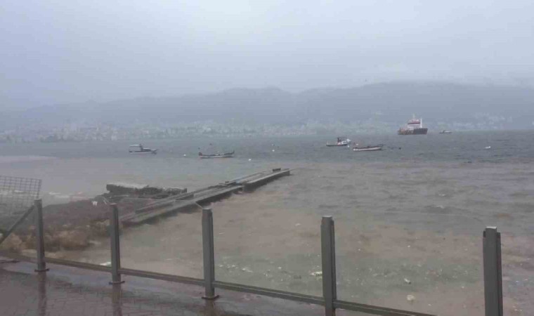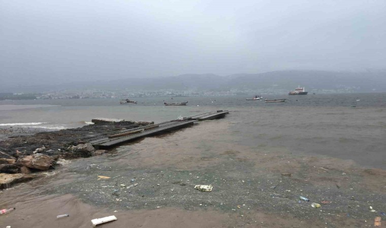 Kocaeli’de fırtına ve yağışlı havanın ardından denizde kirlilik oluşurken, suyun rengi ise kahverengiye döndü.